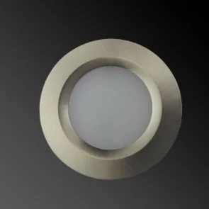 Brushed Nickel downlight, designed for recess mounting, made with a metal body and bezel. The light fitting has built in LEDs, providing a bright light for just 3W of power.