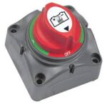 The BEP 701S Contour Mini Battery Selector Switch offers flexible mounting, 200A continuous, 1000A cranking, and ignition protection. It’s ideal for 2-battery systems, meeting ABYC standards and UL 1107 testing.