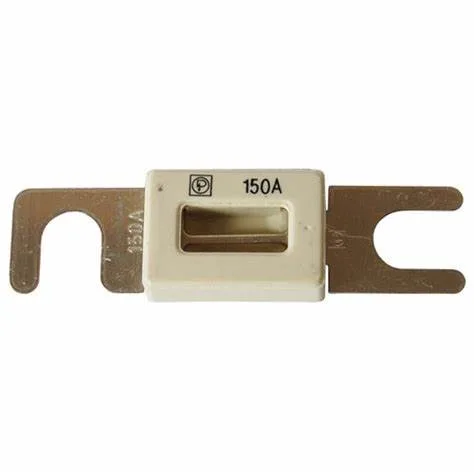 Bolt-on, low profile, heavy duty, high current ANL fuses for high current wiring system protection with visible fuse status window.