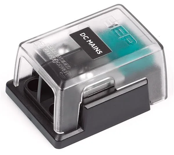 The MAXI® Fuse Holder securely fuses heavy loads (30-80A), ideal for battery chargers or mains feeds. It accepts 1/4" studs and cables up to 25mm², ensuring safe, efficient, and compliant connections with tinned brass clamps.