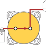 Battery switch on/off by Bluesea systems. Switches a single battery to a single load group. It is ignition protected- is safe for installation around gasoline powered boats. Its case design allows for surface or rear panel mounting. It has 2 switch positions, is red in colour and has a maximum voltage of 48v. The switch has a continuous rating of 350a, and an intermittent rating of 600a (5 minutes)