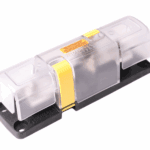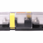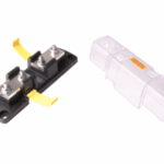 This holder has large tinned copper mounting blocks for dissipating heat, with the 4-stud design allowing for large cable lug connections without obstruction from the fuse. The stainless steel fixing hardware provides corrosion-resistance in marine environments and allows a high torque for excellent, low resistance electrical connections The cover has break-out panels to allow cable entry from multiple directions and the PBT base has high heat resistance for use in areas close to engines.