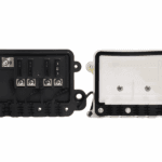 The 5056100 ST-Blade Water Resistant Fuse Block offers IP66 protection for up to four 25A fused circuits, 32V DC max, corrosion-resistant tin-plated copper busbars, tethered cover with fuse storage, and compact marine-grade design.