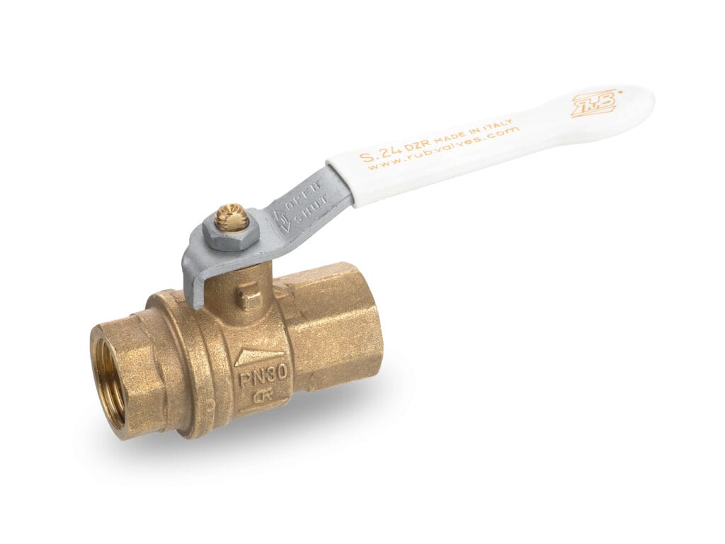 Durable 1½" DZR brass ball valve S24 H00 with BSP threading. Corrosion- and dezincification-resistant, featuring smooth quarter-turn operation and ergonomic lever handle. Ideal for plumbing, heating, marine, and industrial applications.
