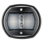 The Osculati 11.448.04 is a black stern navigation light with a 135° white beam, waterproof and UV-resistant housing, designed for 12V systems on vessels up to 12 metres.