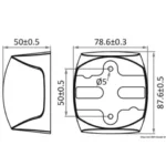 Bi-colour LED navigation light for vessels up to 20m, compliant with COLREG72 and ABYC-C5. Certified RINA and NMMA, 225° left visibility, watertight polycarbonate lens, 12/24V, 2m marine-grade cable, black plastic housing, 88 x 60 x 42mm.