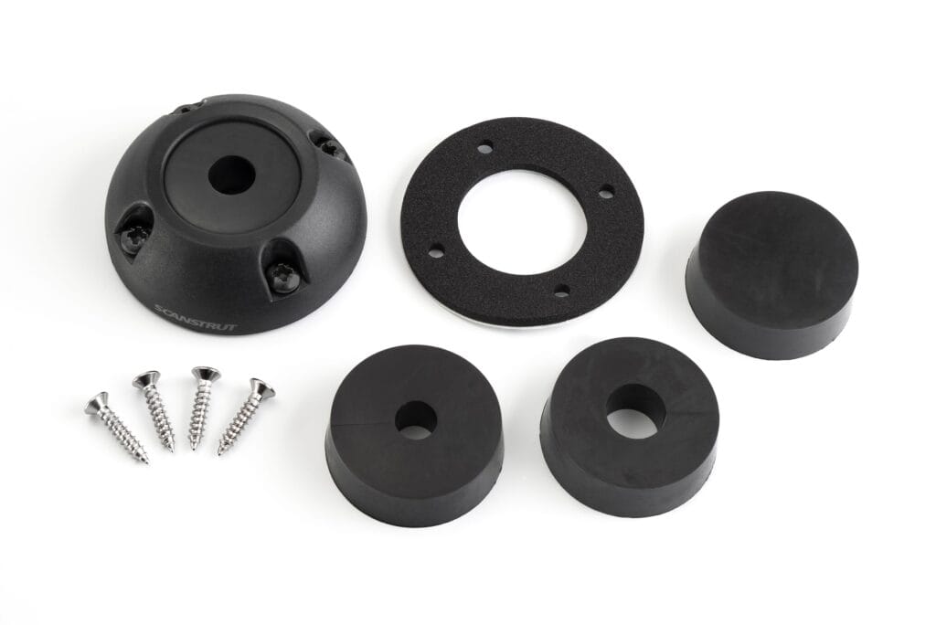 Scanstrut DS30-p-BK waterproof deck seal for routing electrical cables. This cable gland is made from UV stable glass filled nylon and has an attractive dome shaped design to provide a strong outer shell. This dome also provides an extra shield from water, although the watertightness of the gland comes from a tapered bung and a closed cell base seal.