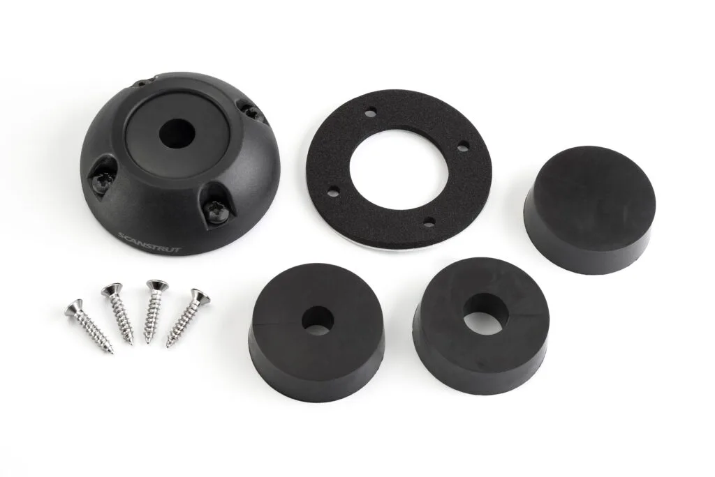 The Scanstrut DS30-P-BK IP68 vertical entry cable seal is ideal for cables 9-14mm and connectors up to 30mm. Features include a watertight tapered bung, captive nuts, split-seal design, and an impact-resistant dome for easy installation.
