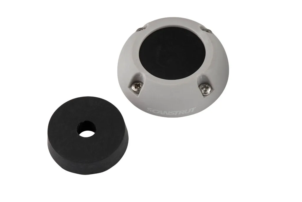 Scanstrut DS40-P waterproof deck seal for routing electrical cables. This cable gland is made from UV stable glass filled nylon and has an attractive dome shaped design to provide a strong outer shell. This dome also provides an extra shield from water, although the watertightness of the gland comes from a tapered bung and a closed cell base seal.