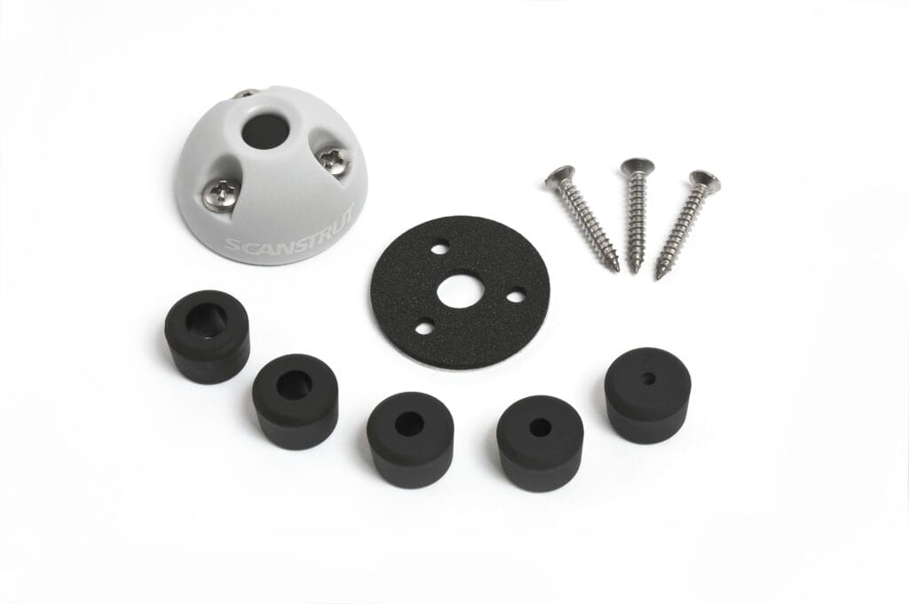 Scanstrut DS6-P waterproof deck seal for routing electrical cables. This cable gland is made from UV stable glass filled nylon and has an attractive dome shaped design to provide a strong outer shell. This dome also provides an extra shield from water, although the watertightness of the gland comes from a tapered bung and a closed cell base seal.