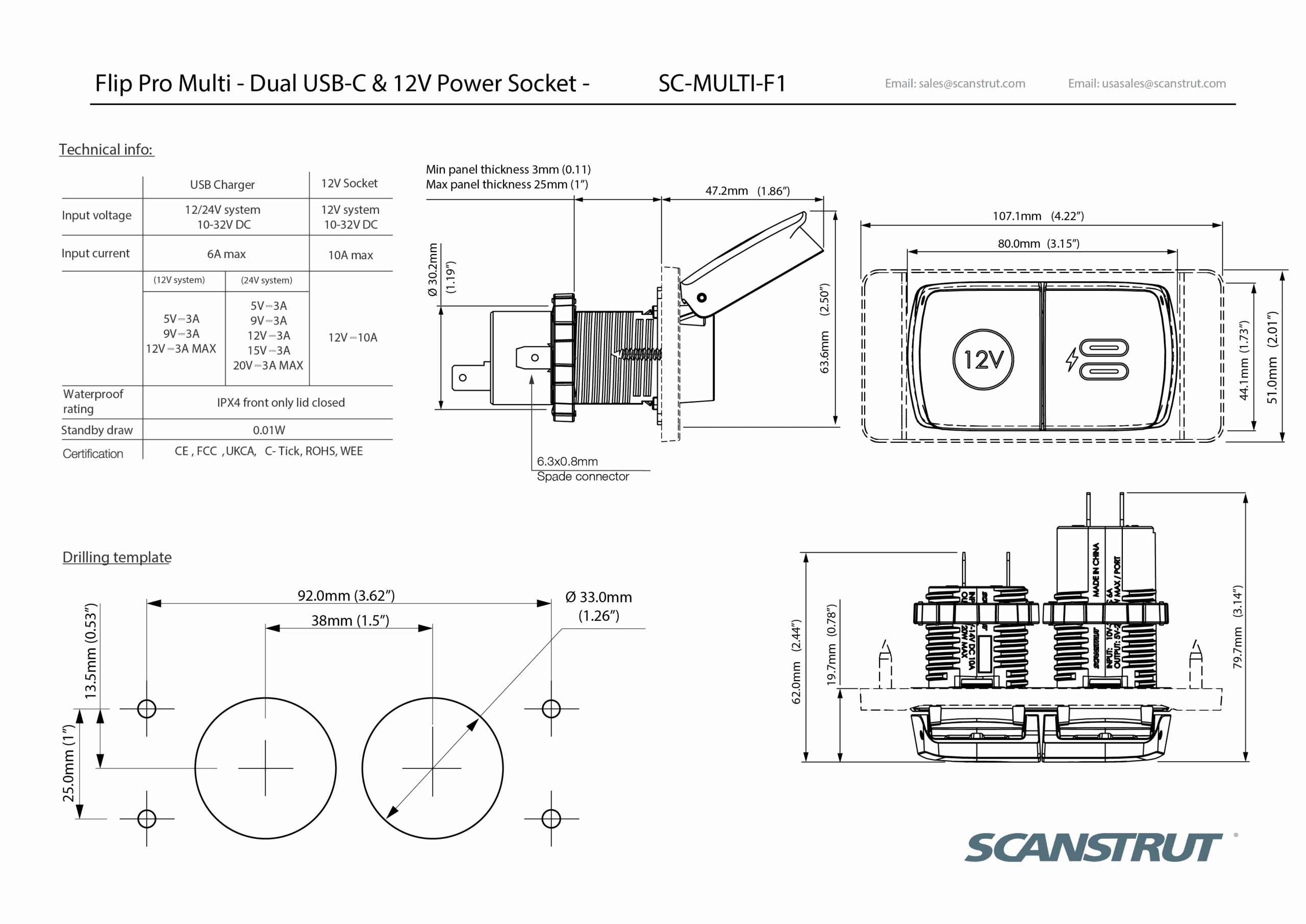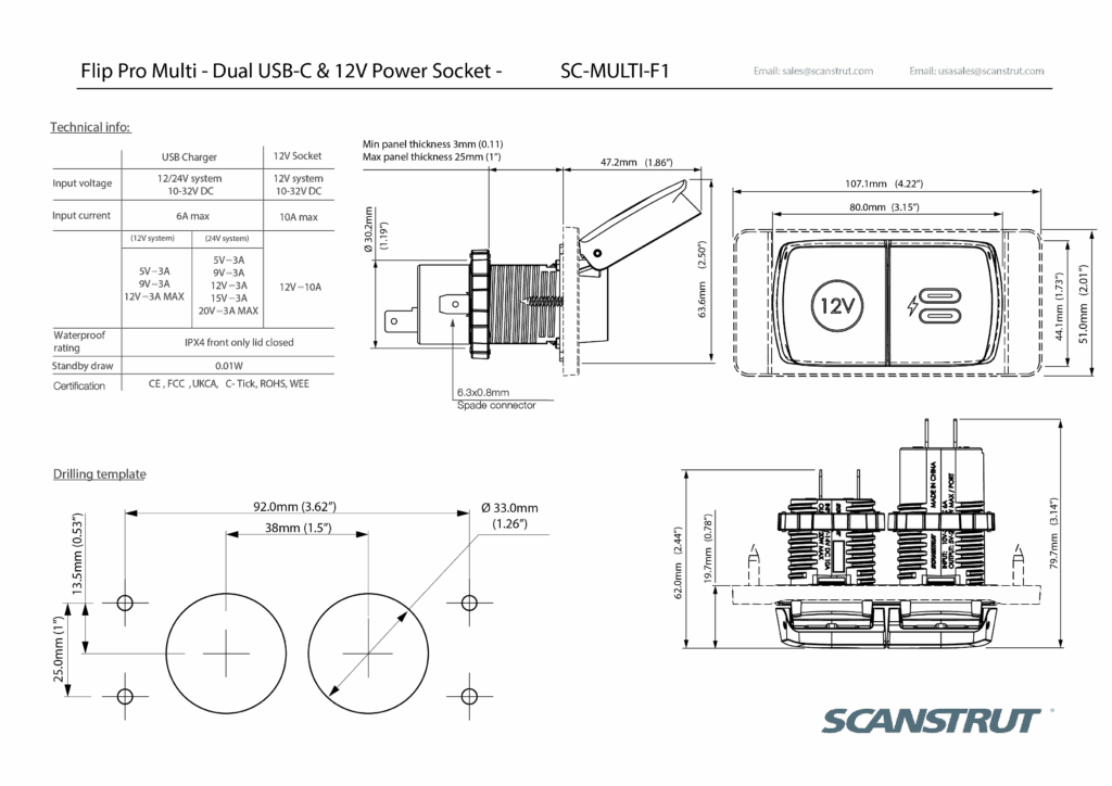 Scanstrut SC-MULTI-F1 Flip Pro Multi Dual USB-C & 12V Power Socket