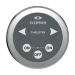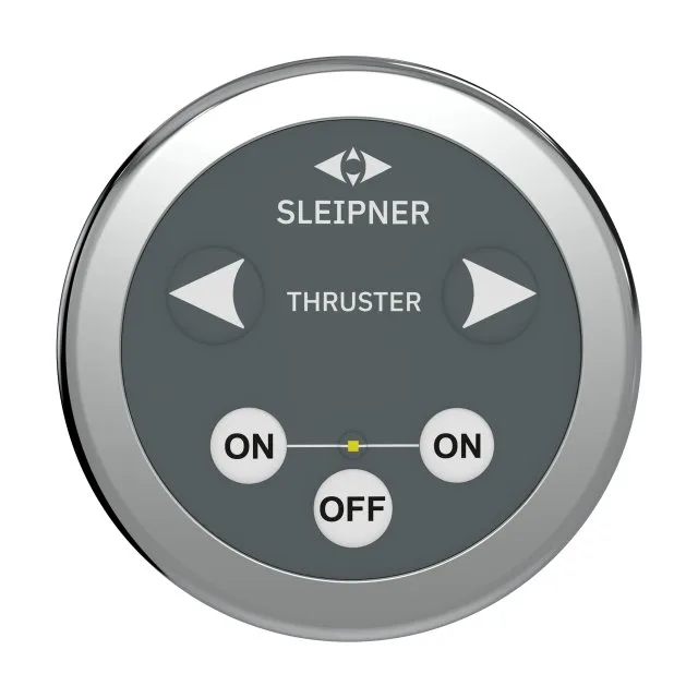 The Sleipner bow thruster control panel features a round, touch-sensitive design in grey, compatible with 12/24 V systems, offering precise, intuitive control for safe and efficient bow thruster operation.