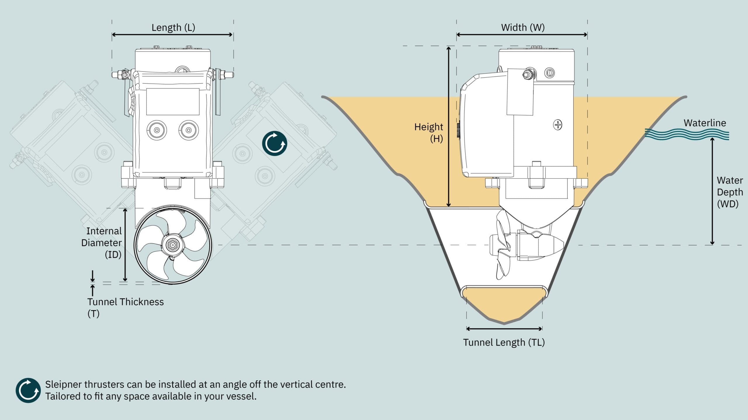 Offering excellent installation flexibility, the SE60 can be mounted at any angle on the tunnel. Its electric motor can also be rotated 90° on the bracket for optimal positioning.
