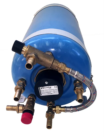 The Surecal 15-litre single-coil calorifier efficiently heats water using engine cooling and an immersion heater. Made of copper, it provides clean water, retains heat for 24 hours, and includes a thermostatic valve, pressure release, and immersion heater.