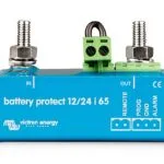 The Victron Smart BatteryProtect 12/24V 65A disconnects non-essential loads to prevent battery damage or engine-start failure, supports Bluetooth programming, Li-ion batteries, delayed alarms, and safe MOSFET switching for reliable energy management.