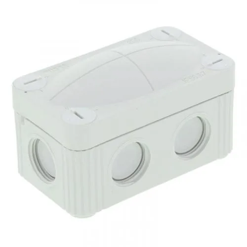 The Wiska Combi 206 (10109569) is a compact, IP66-rated junction box with eight cable entries, UV-resistant polypropylene housing, and no terminals—ideal for flexible, weatherproof electrical installations.
